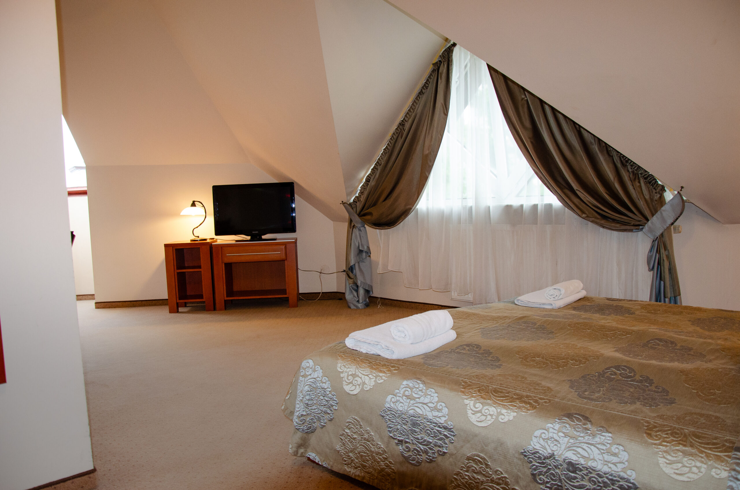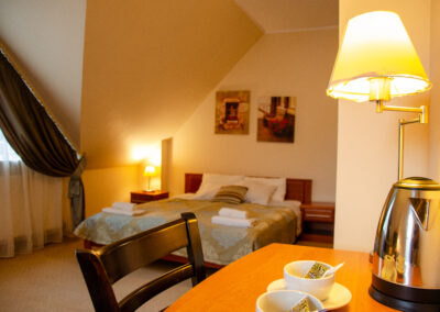 Obiekt oferuje 27 komfortowych pokoi i apartamentów oraz sale konferencyjne w tym specjalny apartament z wanną z hydromasażem oraz apartament z tarasem i widokiem na jezioro.
